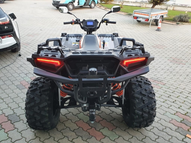 A Polaris Sportsman modellcsalád legújabb tagja, 89 Lóerős motorját, csak igazi kuriózum 144 cm szélességű futóműve múlja felül. Az új Sportsman S előre és oldalra nyúló lengőkarjai erősített a Ranger modell családból érkező diffije mind a meggyőző stabilitásért felelnek. új generációs LED technológiával ellátott lámpái minden körülmények között a legbiztonságosabb látást biztosítják, áttervezett kipuffogó rendszere kifejezetten hangzásában és teljesítményben is kiváló.